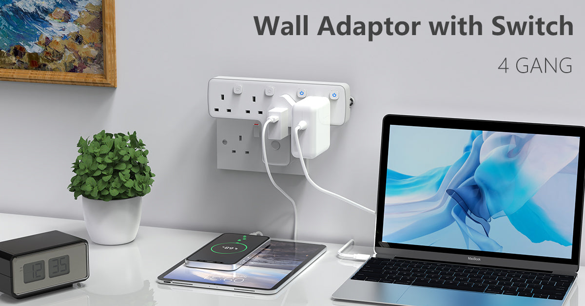 4 Gang Plug Adaptor with Individually Switches, Surge Protector