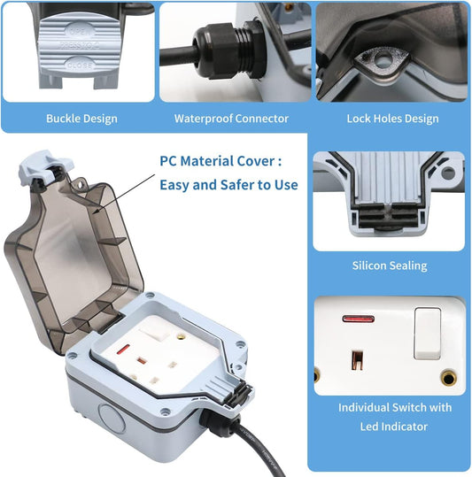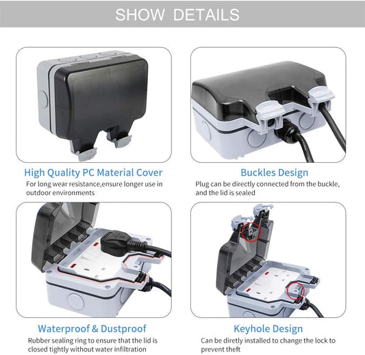 سلك تمديد 10 متر 2Gang مقاوم للماء IP66، للحديقة، مفتاح فردي