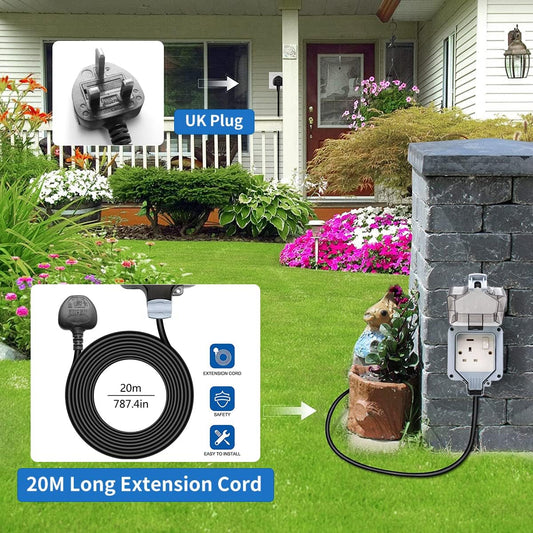 سلك تمديد 20 متر 2Gang مقاوم للماء IP66، للحديقة