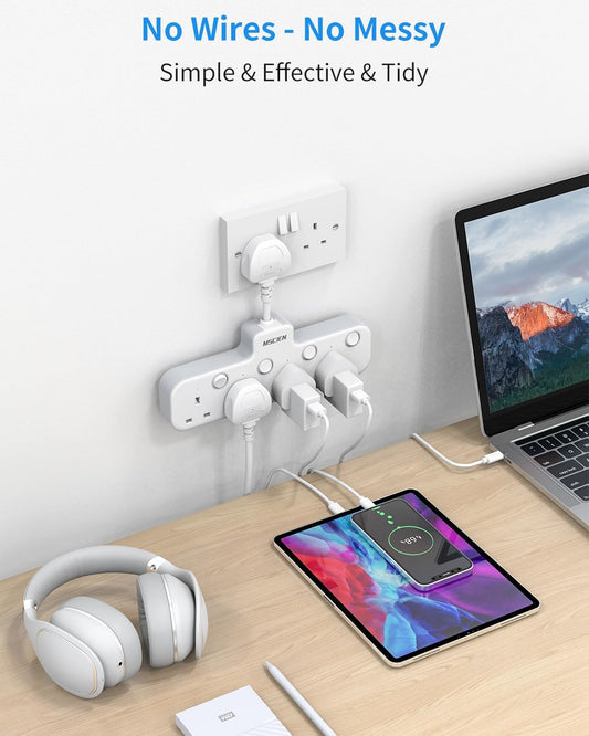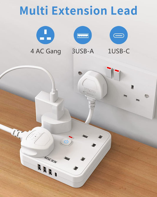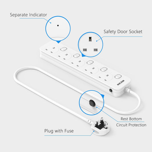 سلك تمديد 5 سم بـ 4 مجموعات مع مفاتيح فردية، واقي من زيادة التيار