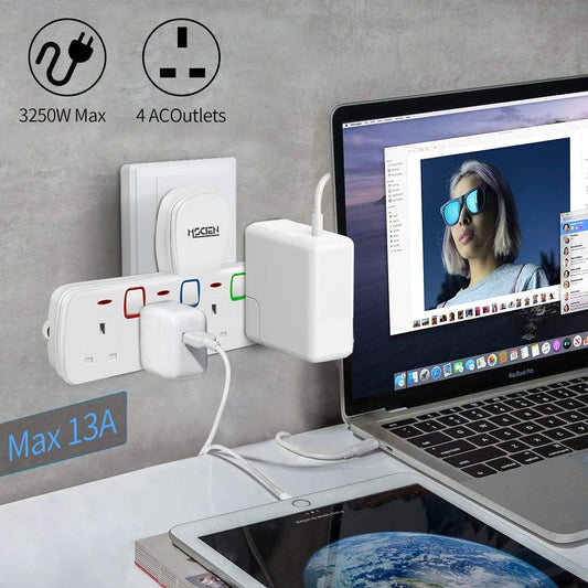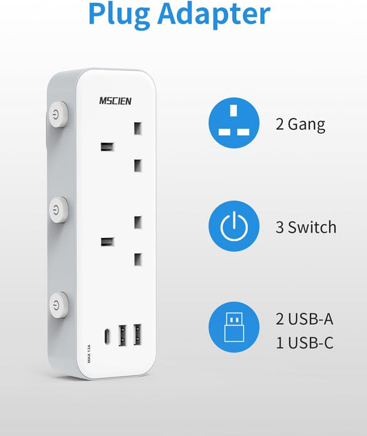 محول قابس ثنائي النطاق مع 2 منفذ USB-A، يتم تبديلهما بشكل فردي