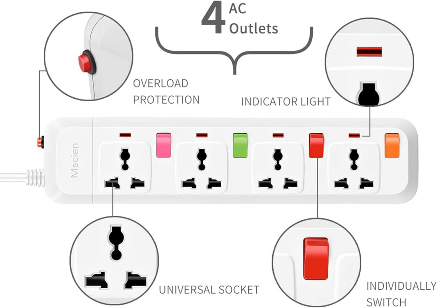 - 【مقابس توفير الطاقة بمفاتيح فردية】يأتي مقبس الطاقة الممتد متعدد المقابس من Mscien مع مفاتيح تشغيل/إيقاف منفصلة ومصابيح مؤشر، مما يجعل العملية مرئية وقابلة للتحكم.