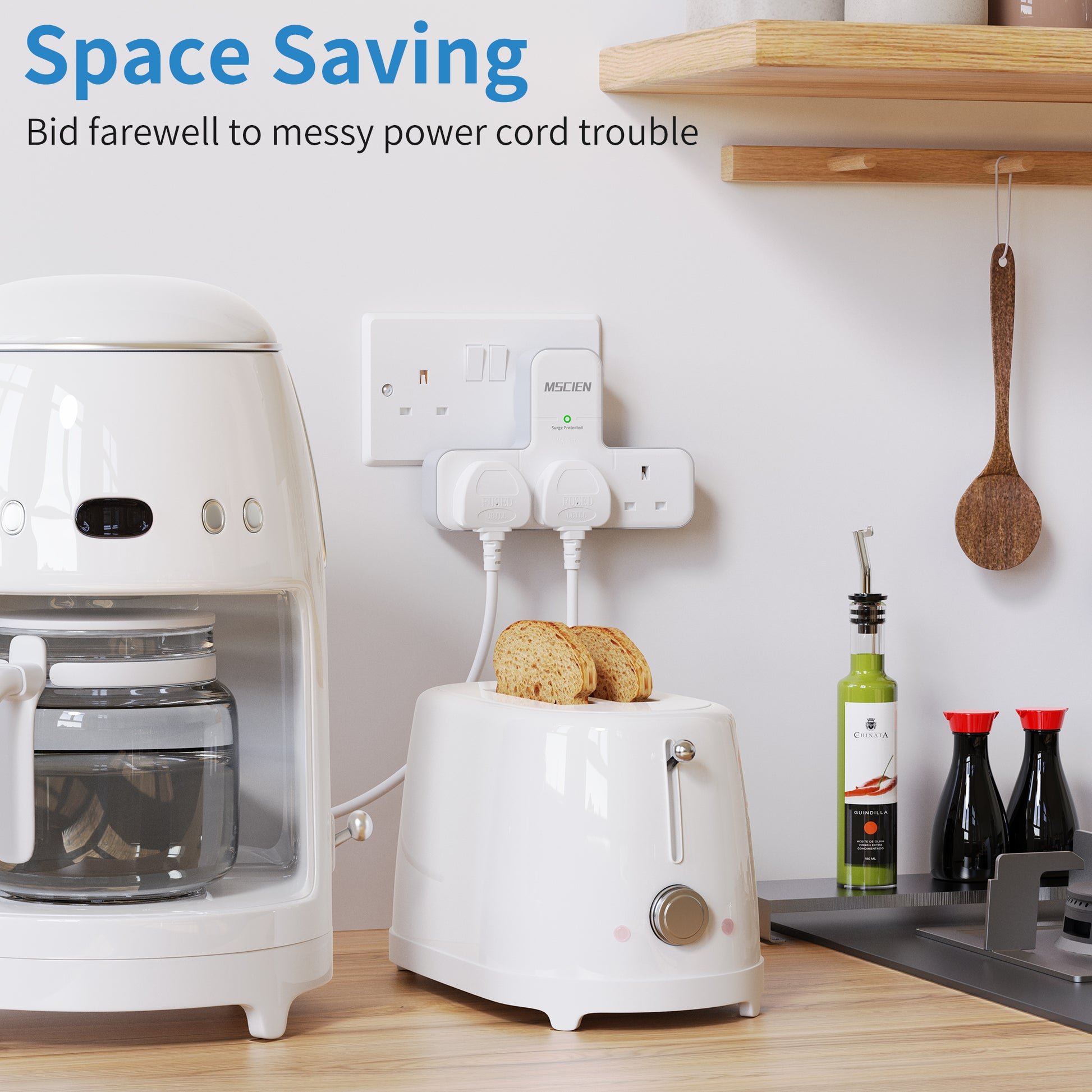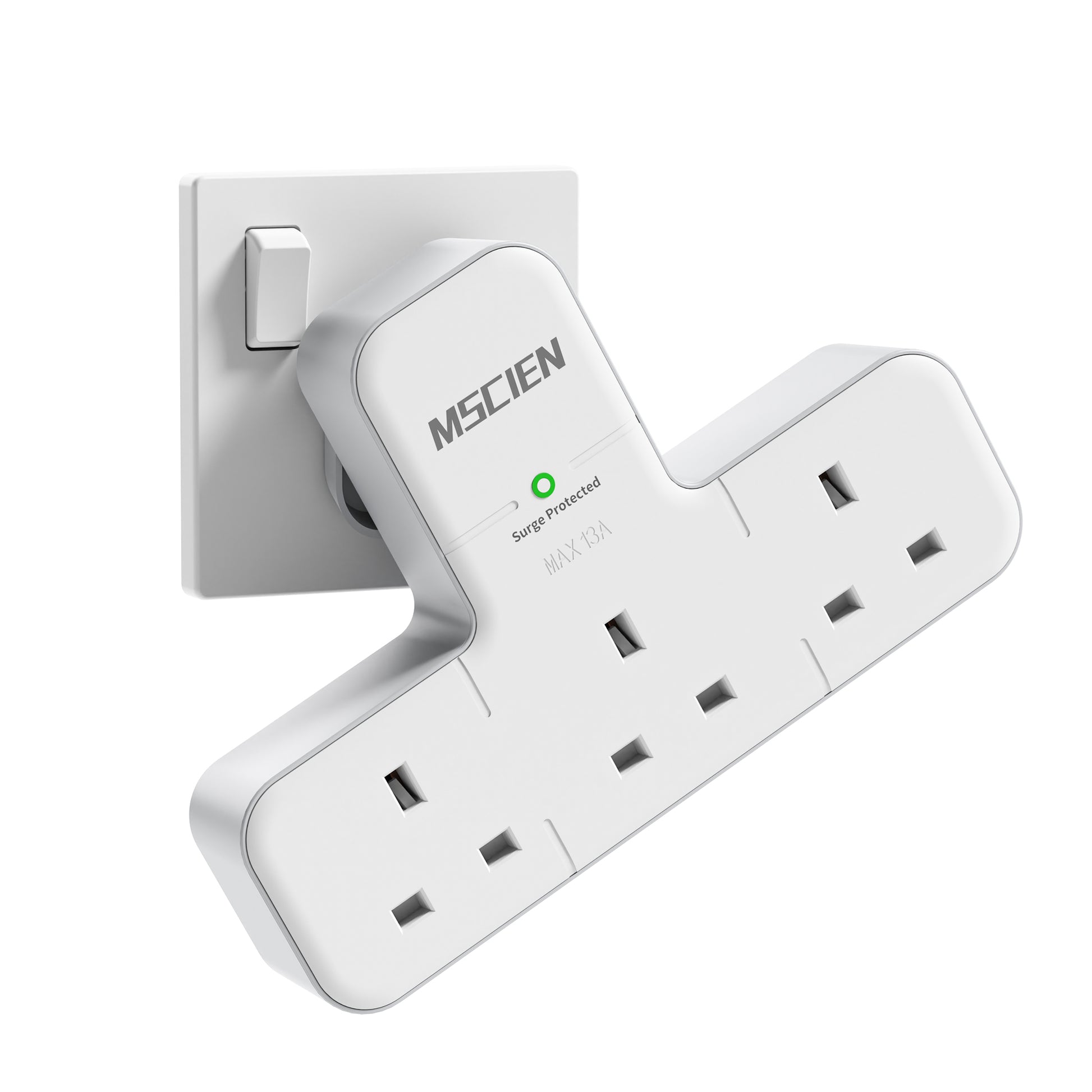 Multi Plug Adapter, Mscien 3 Way UK Plug Extension Socket with 315 Degree Rotation, Wall Power Strip Surge Protector Extender without Cable Plug Adaptor For Home, Office, Dorm