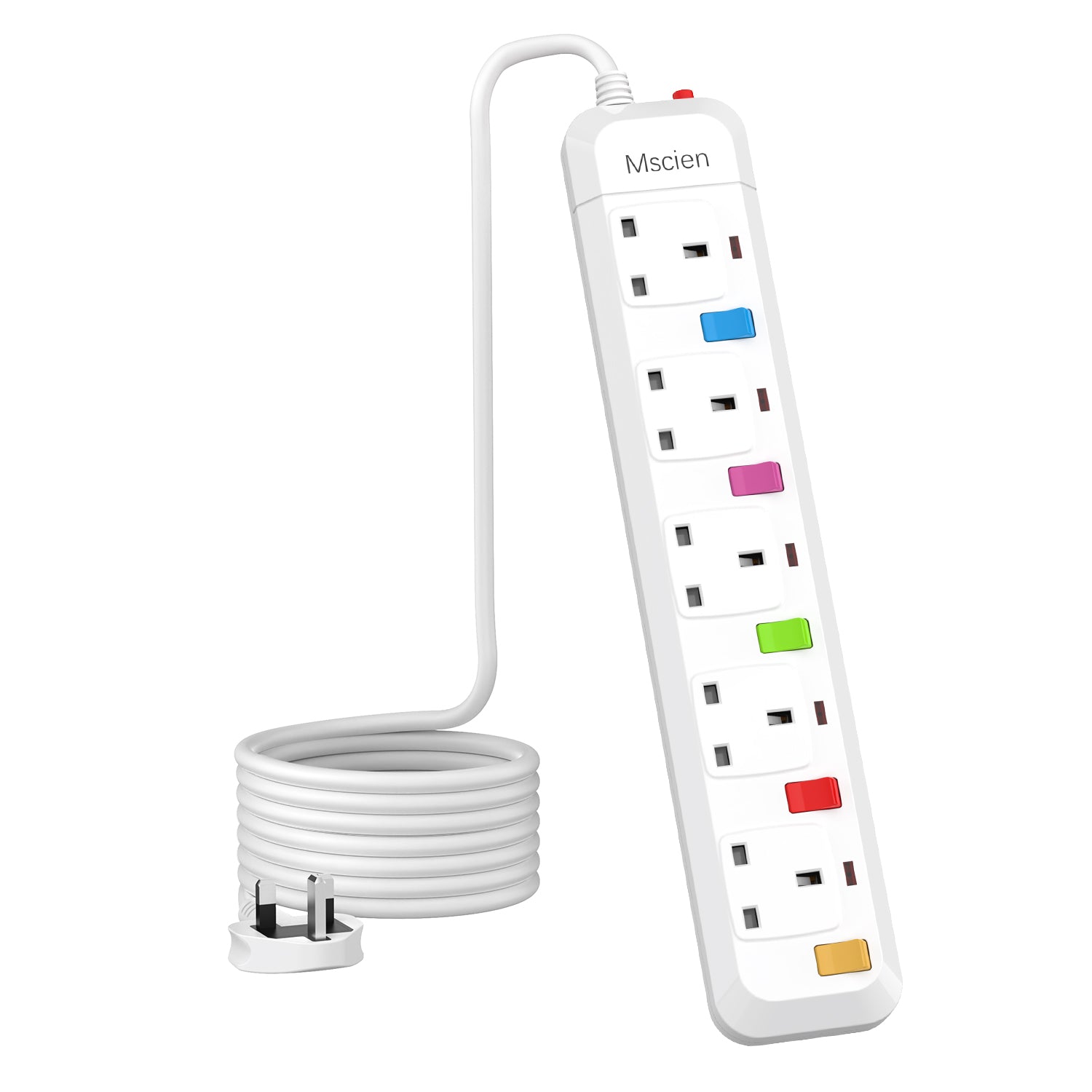 - 【Safety First】The on/off switch can show status of use gives you full control over usage of it. Mscien plug extender comes with a Standard UK plug with a 13A Fuse in plug head, meeting the criterion of BS1363/A. Child-protective safety door keep children safe from electric shock of careless touching. Built with 750°C flame-retardant material.