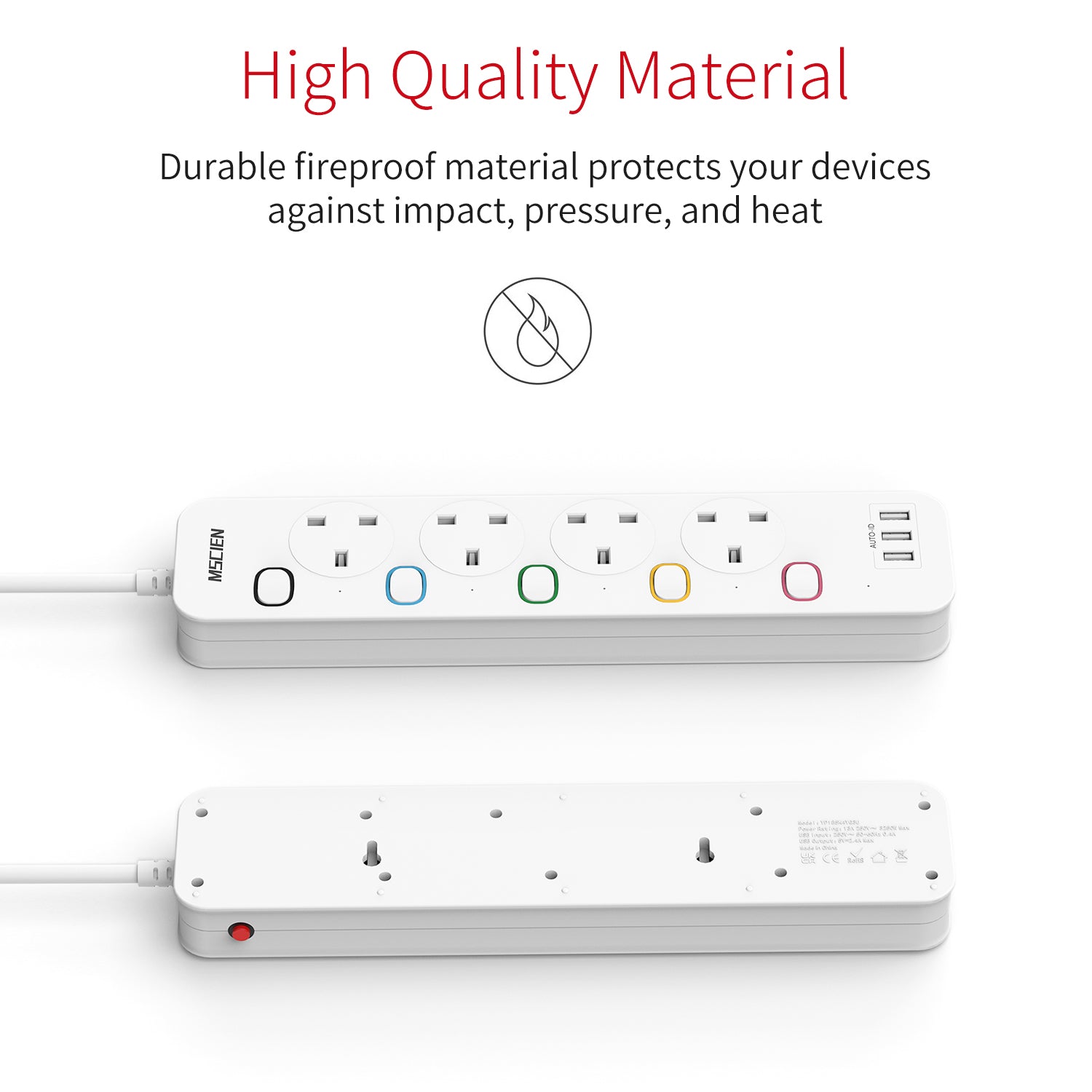 - 【Safety First】Mscien extension lead comes with a Standard UK plug with a 13A Fuse in plug head, meeting the criterion of BS1363/A. Child-protective safety door keep children safe from electric shock of careless touching. Built with 750°C flame-retardant material.